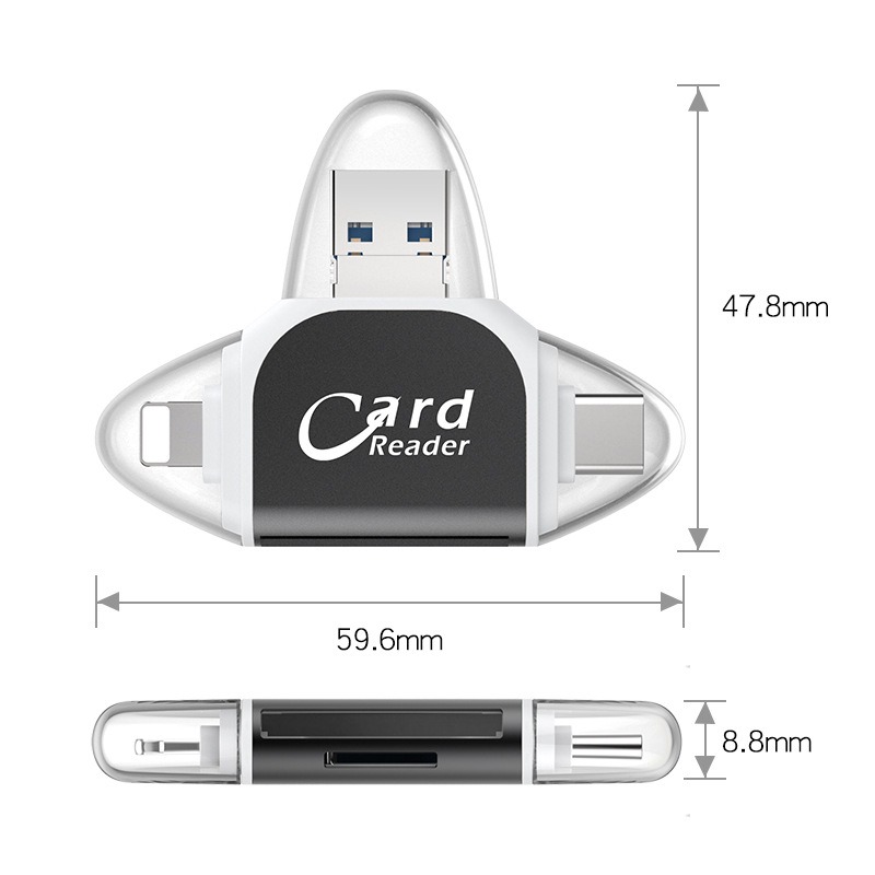 Plug and play for Apple and Android phones multifunctional card reader four in one multifunctional TF card SD card
